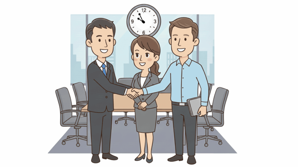 日本のビジネス文化では、会議や約束の時間は「定刻よりも少し早め」に到着し、準備を整えて待つことが、相手への配慮と礼儀だとされています。